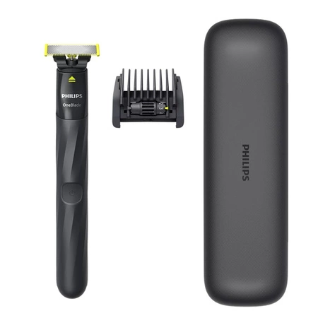 Philips OneBlade QP1424/65 to hybrydowy trymer łączący funkcje strzyżenia, golenia i modelowania zarostu. Odpowiedni na każdy typ owłosienia, pozwala na stylizację, konturowanie i przycinanie w jednym urządzeniu — wszystko bez irytacji skóry