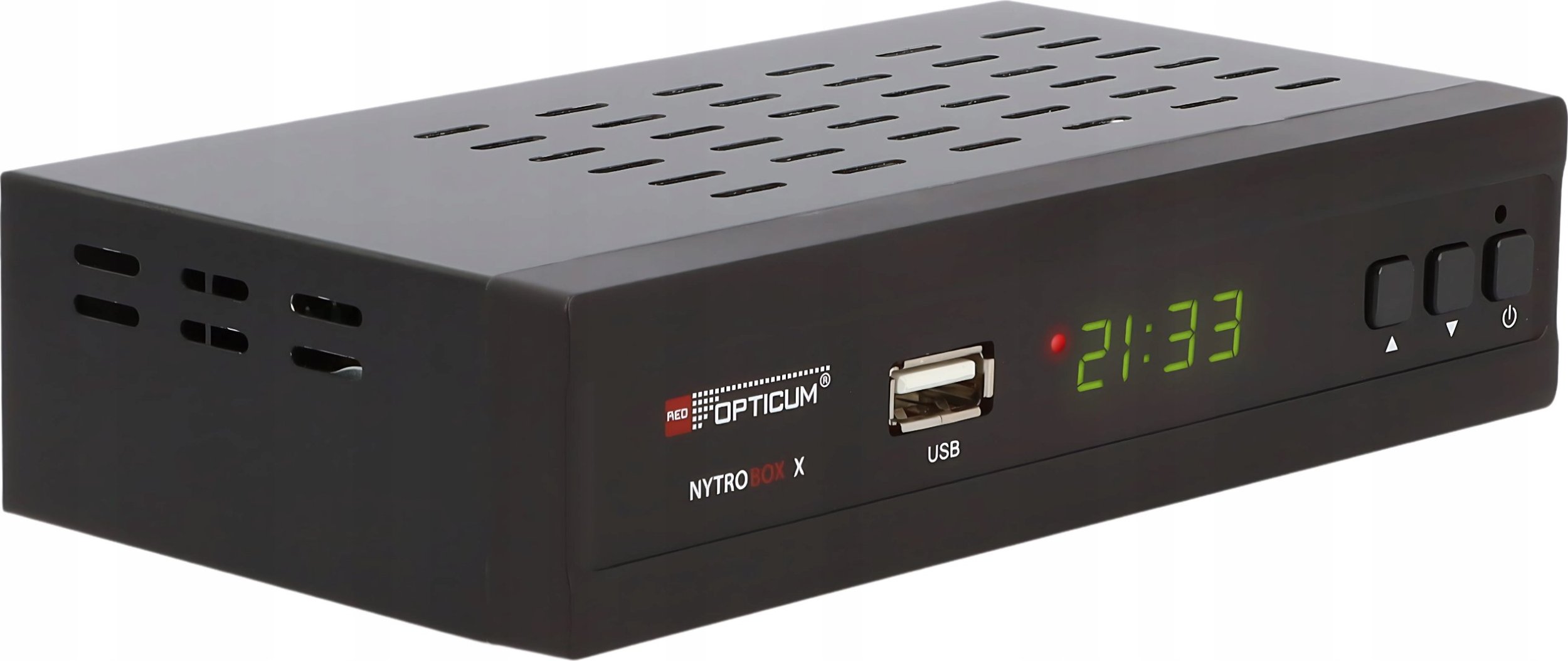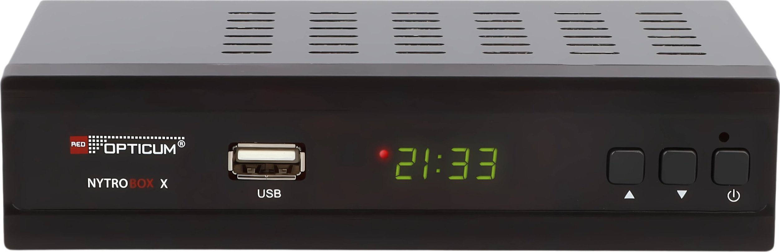 Opticum NYTROBOX X to kompaktowy tuner telewizji naziemnej i kablowej w standardzie DVB-T2/C z obsługą H.265/HEVC. Oferuje wyraźny obraz, szybkie przełączanie kanałów i intuicyjną obsługę – idealny wybór do każdego telewizora.