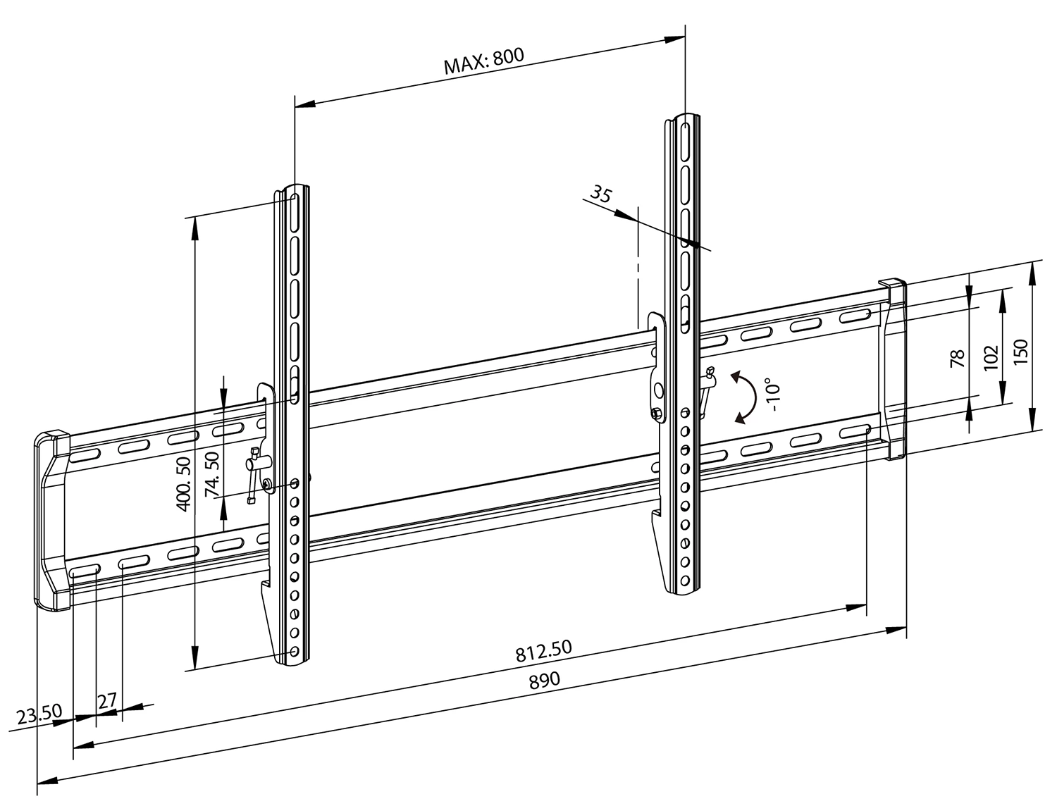 Uchwyt umożliwia regulację kąta nachylenia w zakresie od -10° do 0°. Dzięki tej funkcji można dostosować ustawienie telewizora, aby zapewnić najlepszy komfort oglądania w każdej sytuacji.