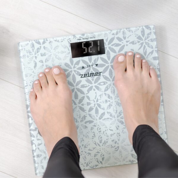 Waga Zelmer ZBS1012 może obsłużyć maksymalne obciążenie do 180 kg, co czyni ją odpowiednią dla szerokiego grona użytkowników. Elektroniczny system pomiarowy zapewnia precyzyjne wyniki, które można śledzić na dużym i czytelnym wyświetlaczu.