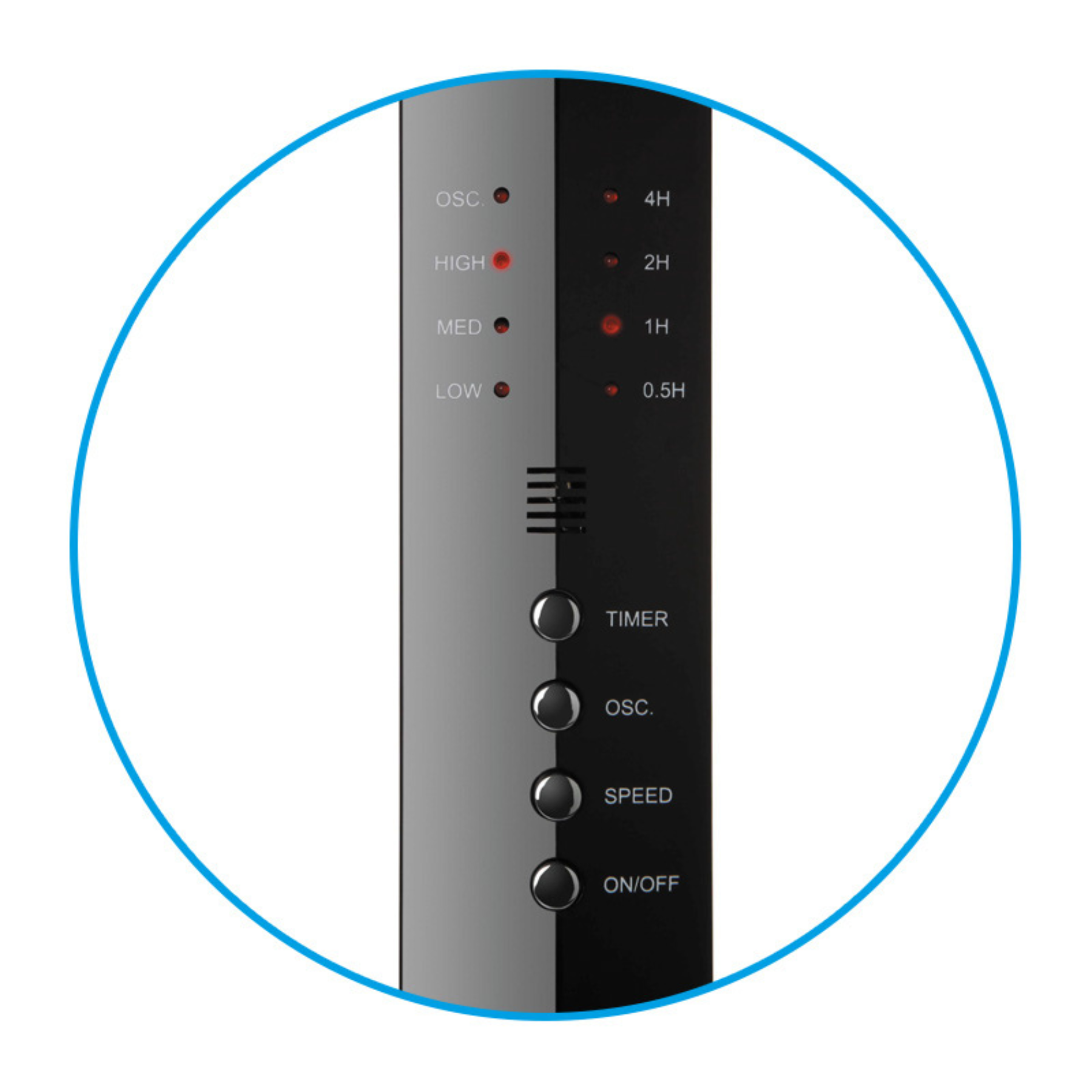 Dzięki 3 poziomom prędkości możesz dopasować intensywność nawiewu do warunków. Model oferuje oscylację 90°, dzięki której chłodzenie obejmuje całe pomieszczenie.