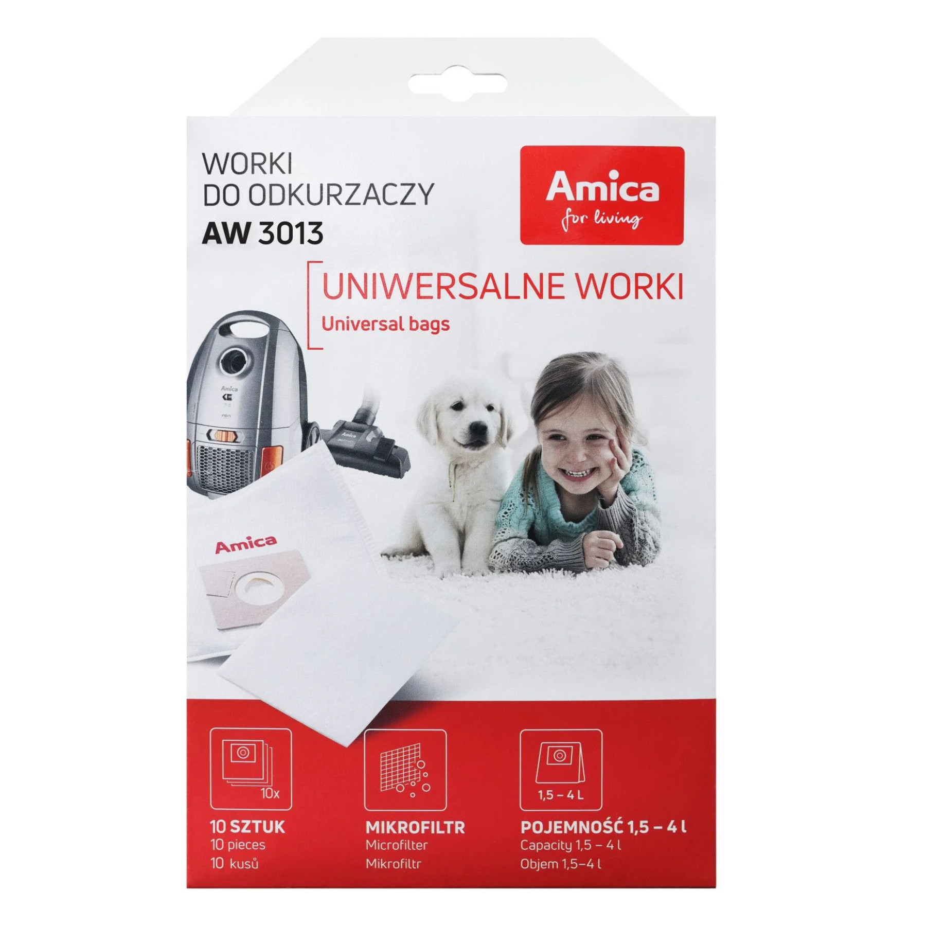 Dzięki uniwersalnej konstrukcji worki Amica AW3013 pasują do wielu modeli odkurzaczy marki Amica, takich jak Fen Turbo, Ora, czy Suracon. Stabilne i szczelne zamocowanie gwarantuje wydajne sprzątanie i brak strat ssania.