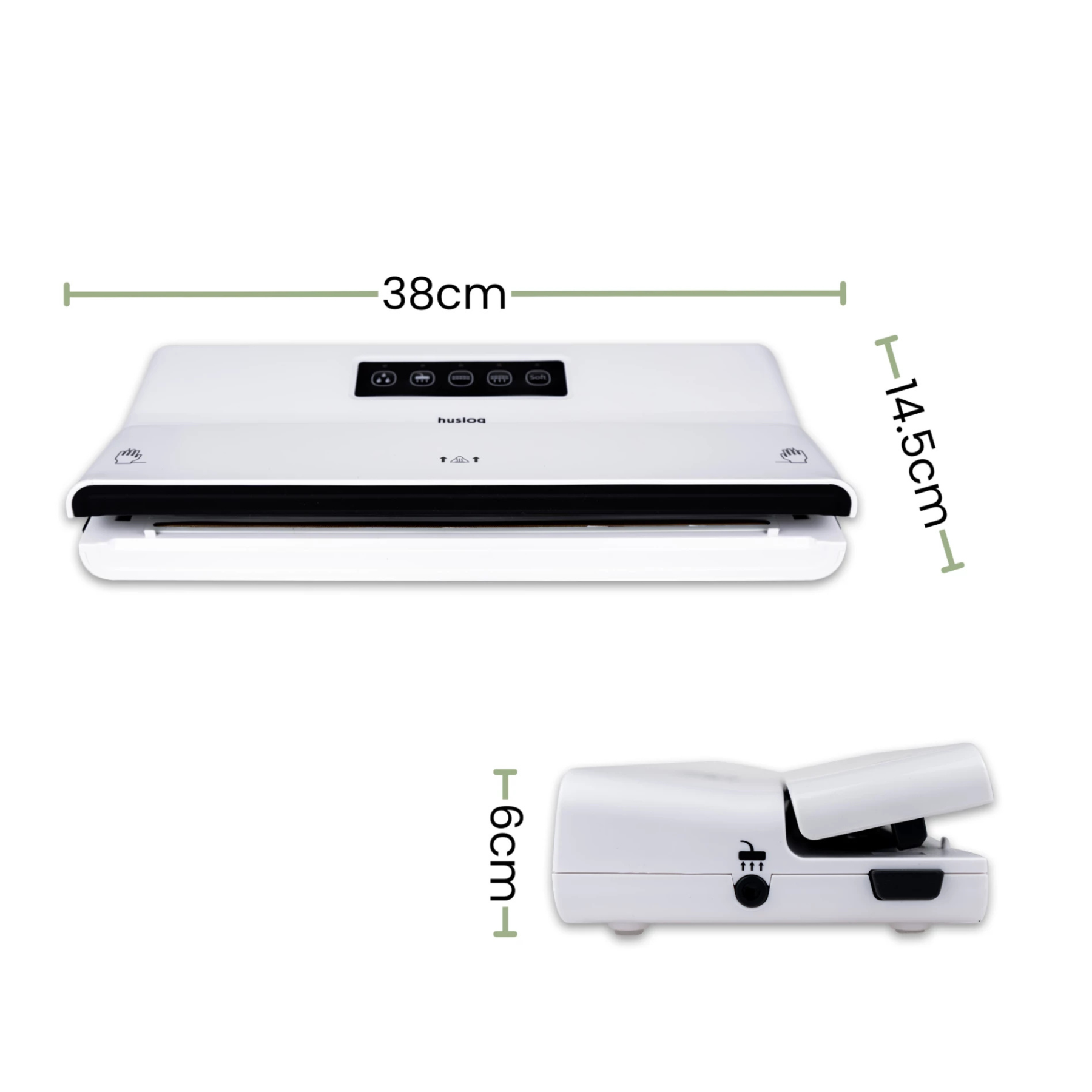 Z mocą 125 W i pompą o wydajności 6,5 l/min, zgrzewarka Huslog zapewnia szybkie i dokładne pakowanie. To rozwiązanie oszczędzające czas i minimalizujące marnowanie żywności.