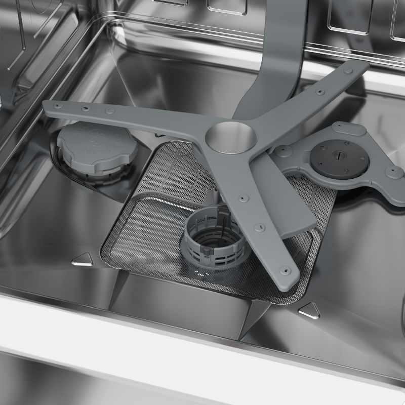 Technologia CornerIntense: Zoptymalizowany ruch ramienia myjącego umożliwia skuteczne zmywanie nawet w narożnikach komory – bez konieczności precyzyjnego układania naczyń.
